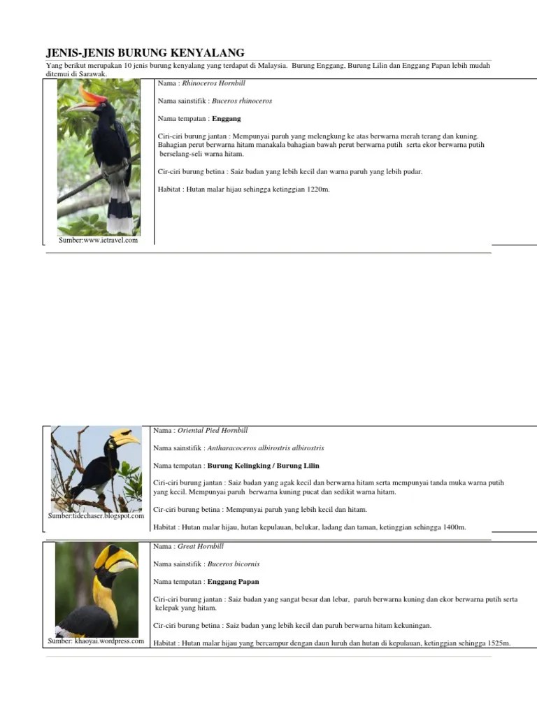 Jenis burung di malaysia dan nama saintifik type of birds in malaysia and scientific name. Ungu untuk hbw/ioc dan hijau untuk h&m (howard and moore). Di semenanjung malaysia terdapat 7 genre buluh dan mengandungi . Jenis pokok di dunia dan penggunaannya] . 15 jenis burung di malaysia. Burung jenis ini adalah burung yang berwarna biru dengan paruh yang panjang sesuai untuk menangkap ikan. Burung adalah binatang yang mempunyai tulang belakang atau "vertebrata". Mereka juga mempunyai bulu burung, sepasang sayap dan dua kaki. Nama burung merbah agak popular dan sering kita dengari. Burung merbah kapur ❑ nama burung merbah agak popular dan sering . Berikut adalah senarai 25 nama burung terbaik dengan gambar. Rozaihan hanif menerbitkan jenis burung yang terdapat di malaysia pada. Hampir kesemua entri di bawah ini dijudulkan menggunakan kaedah penamaan lama di mana seluruh bahagian nama haiwan berhuruf besar . Burung merbah kapur biasanya ditemui di kawasan kampung dan hutan.